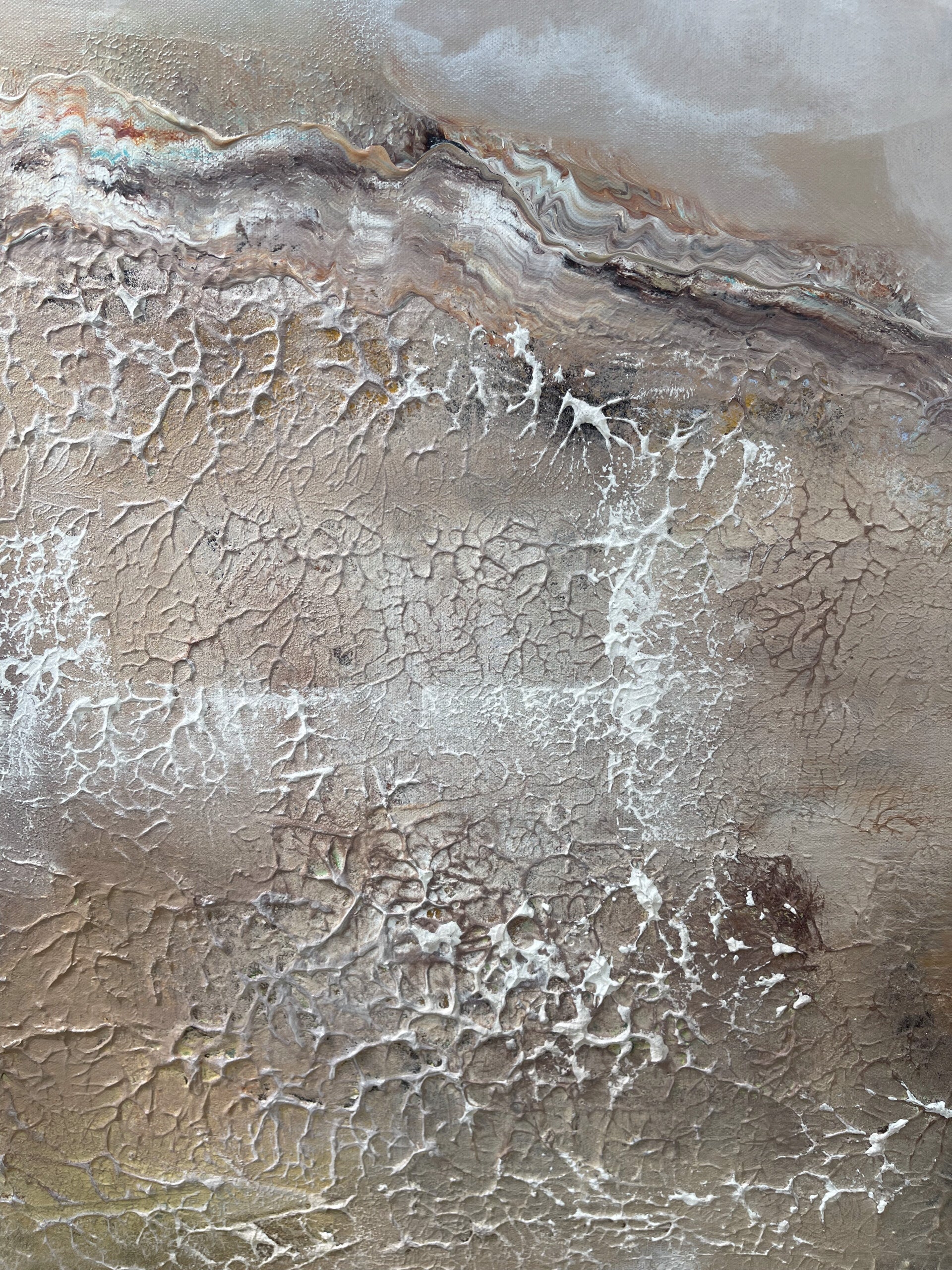 Inspired by the bond of family, this painting depicts three children and two adults embarking on life's journey together, united in their path forward.