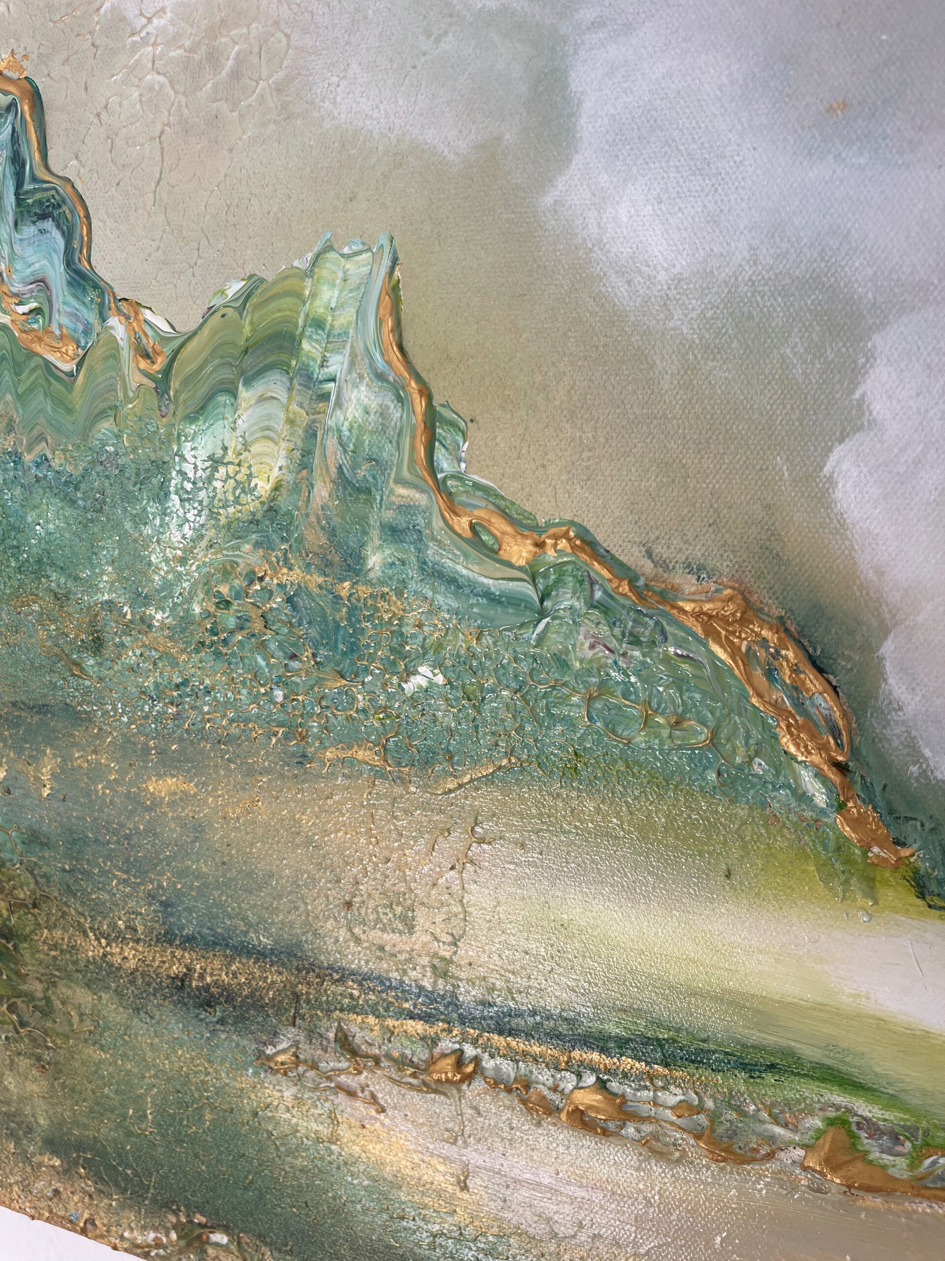 A fusion of the blue and green universes, this landscape captures the dynamic transition from winter to spring, creating a harmonious blend of colors and seasons.